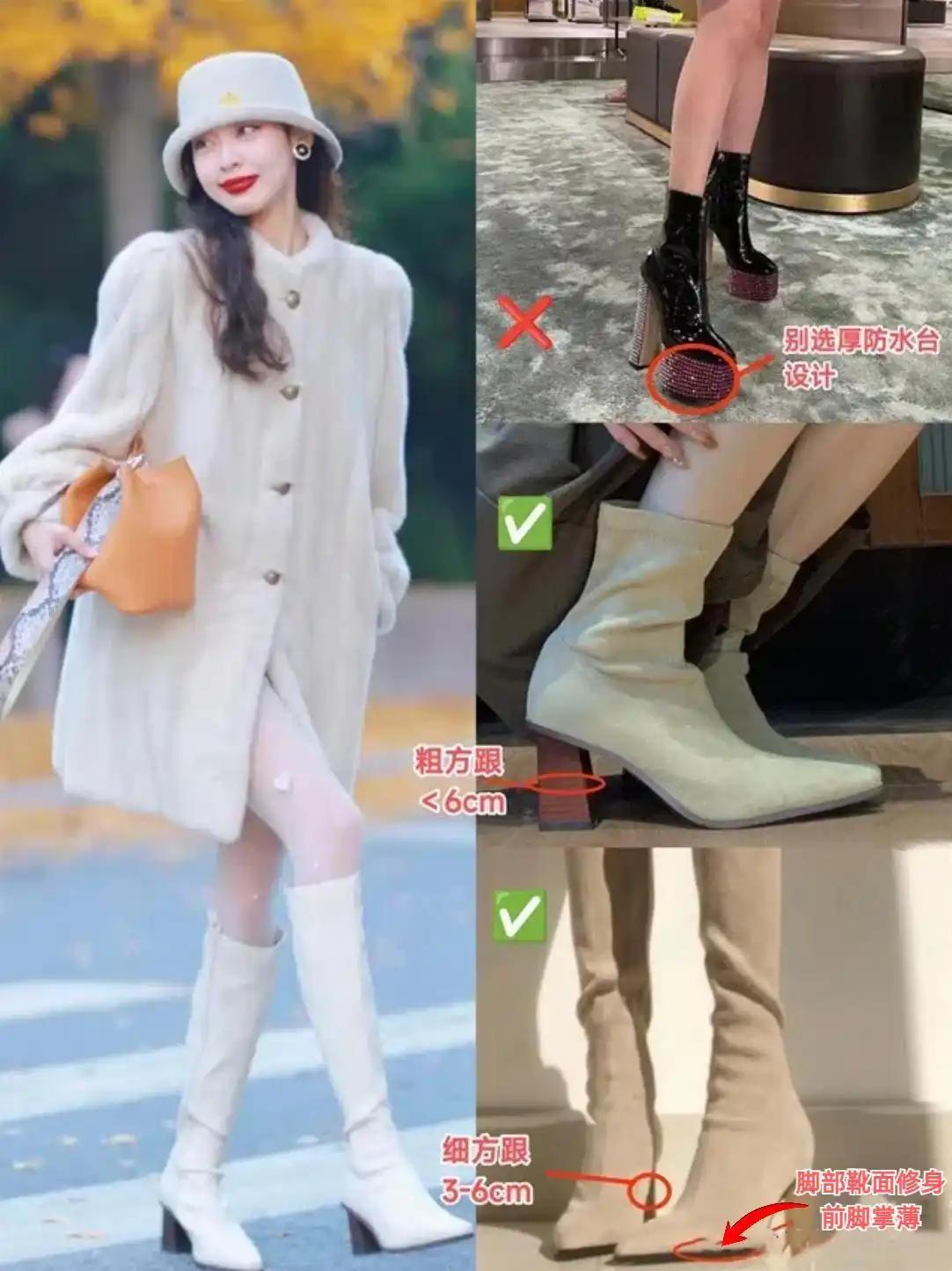 当你选择一双靴子的时候,一定设计不能过于繁杂,越简约,穿出来效果更好看,同样也不能选“靴筒太宽”的版型,很容易显腿粗。